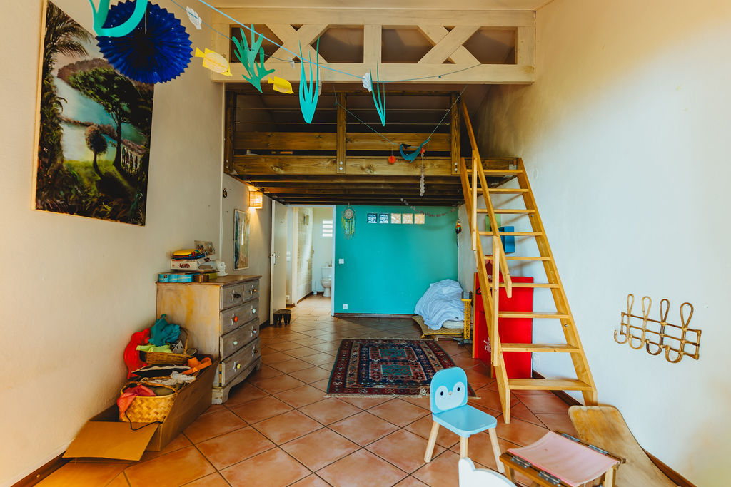 En bordure, l’ancien garage transformé en studio ~30 m² ajoute une pièce maîtresse : bureau indépendant, accueil famille/ado, ou revenu locatif d’appoint sans perturber la vie principale.